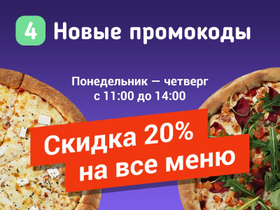 Первое: теперь промокод может быть не только позицией, но и скидкой на заказ. Например, можно сделать промокод со скидкой 20% на День рождения.